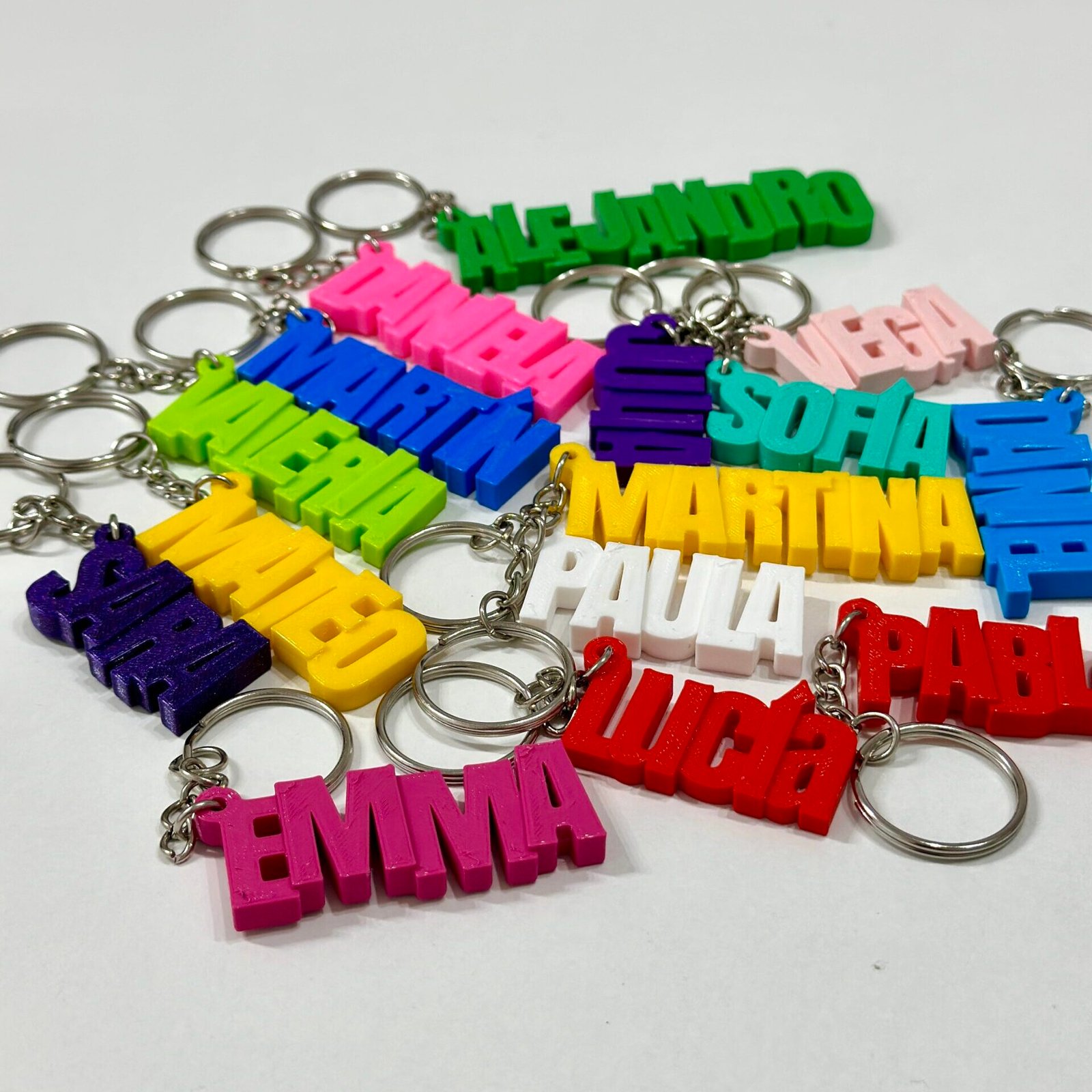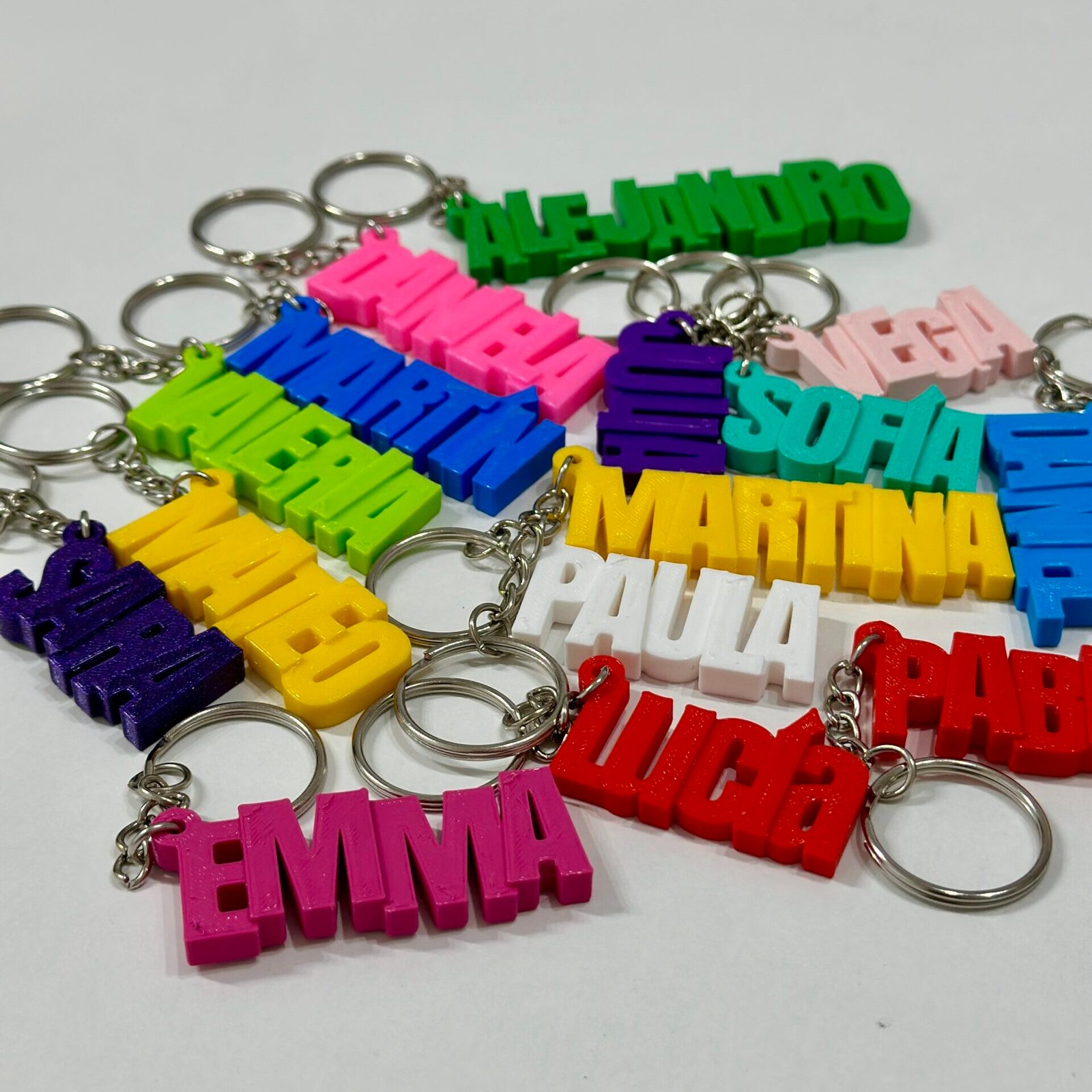 Añade un toque único a tus llaves con nuestros llaveros personalizados con nombre en mayúscula. Cada llavero está cuidadosamente diseñado e impreso en 3D con material PLA sostenible para ofrecerte un producto de calidad excepcional así como ecológico. Llaveros son el accesorio perfecto para marcasito de boda, comunion o cualquier tipo de fiesta. También son ideales como llaveros para mochila.